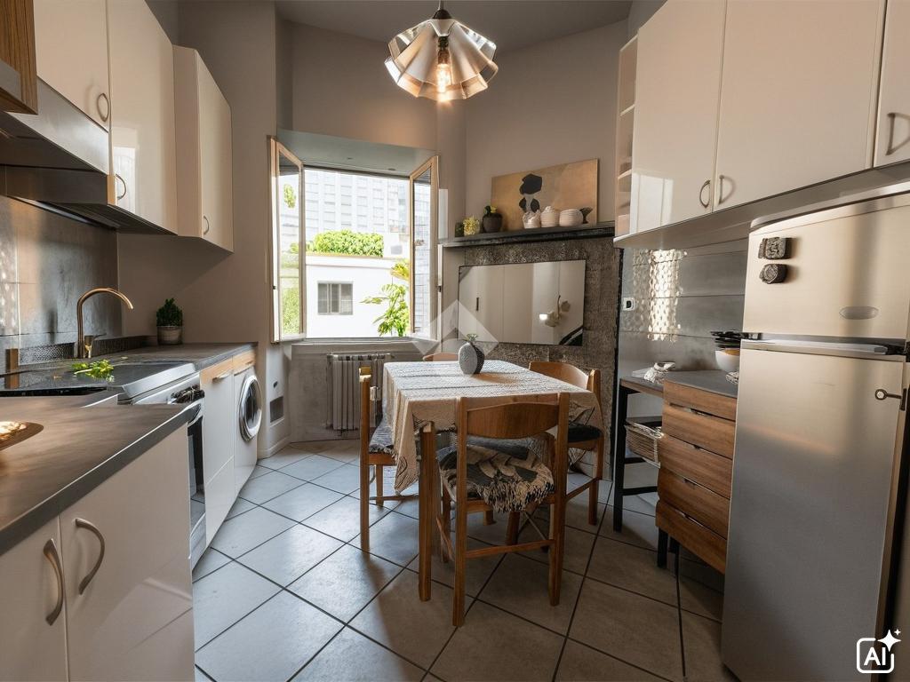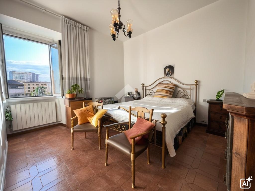L'appartamento, di circa 65 mq, offre una spaziosa camera matrimoniale e un soggiorno accogliente, che può essere comodamente adibito come seconda camera o come un comodo studio.